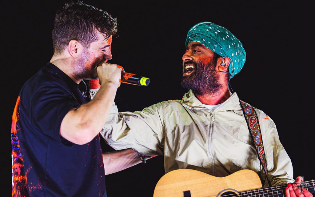 Martin landed in Mumbai on Thursday, March 12, and promptly visited Arijit Singh’s record label office for a festive pre-Holi celebration. (Holi is India’s vibrant festival of colors celebrating spring and renewal.) Afterward, Martin and his team finalized preparations for the historic show.